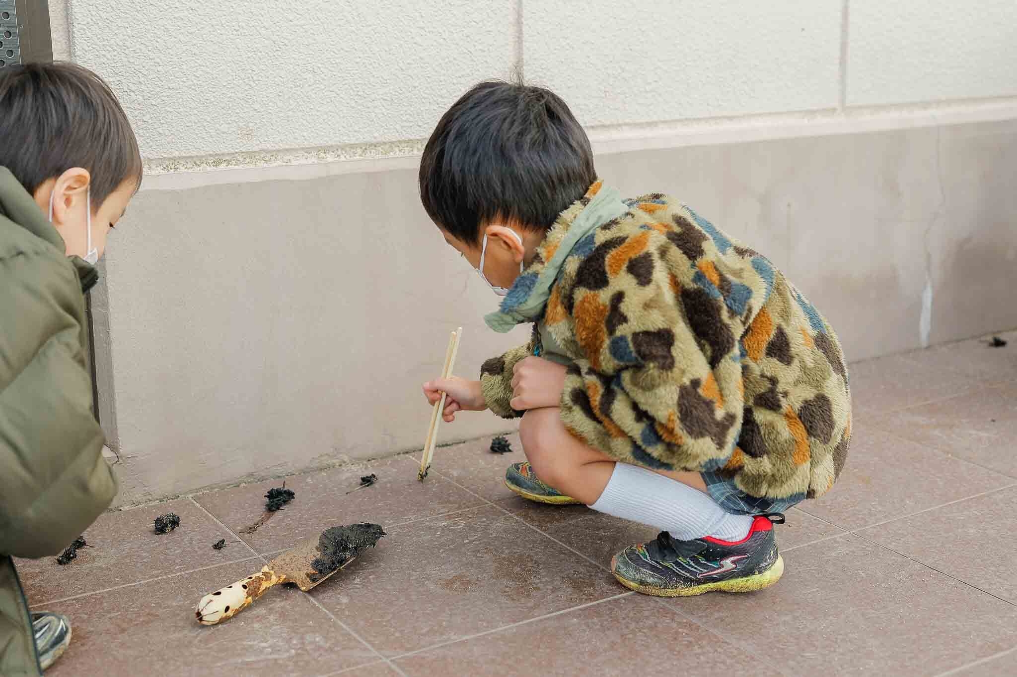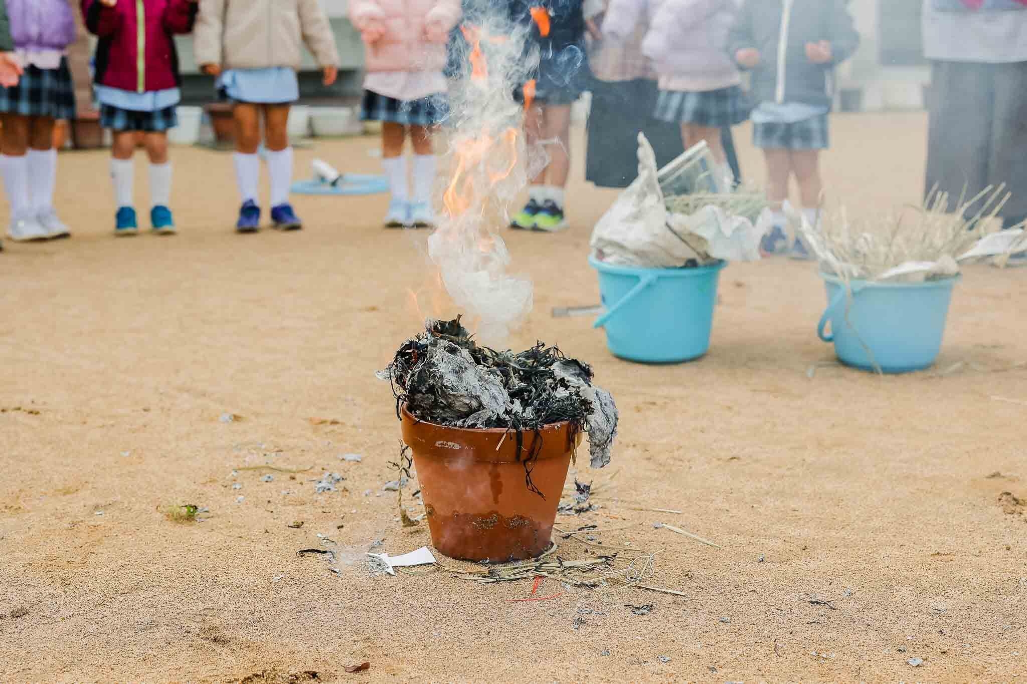 どんど焼きが終わると灰は園舎の周りに置きました。