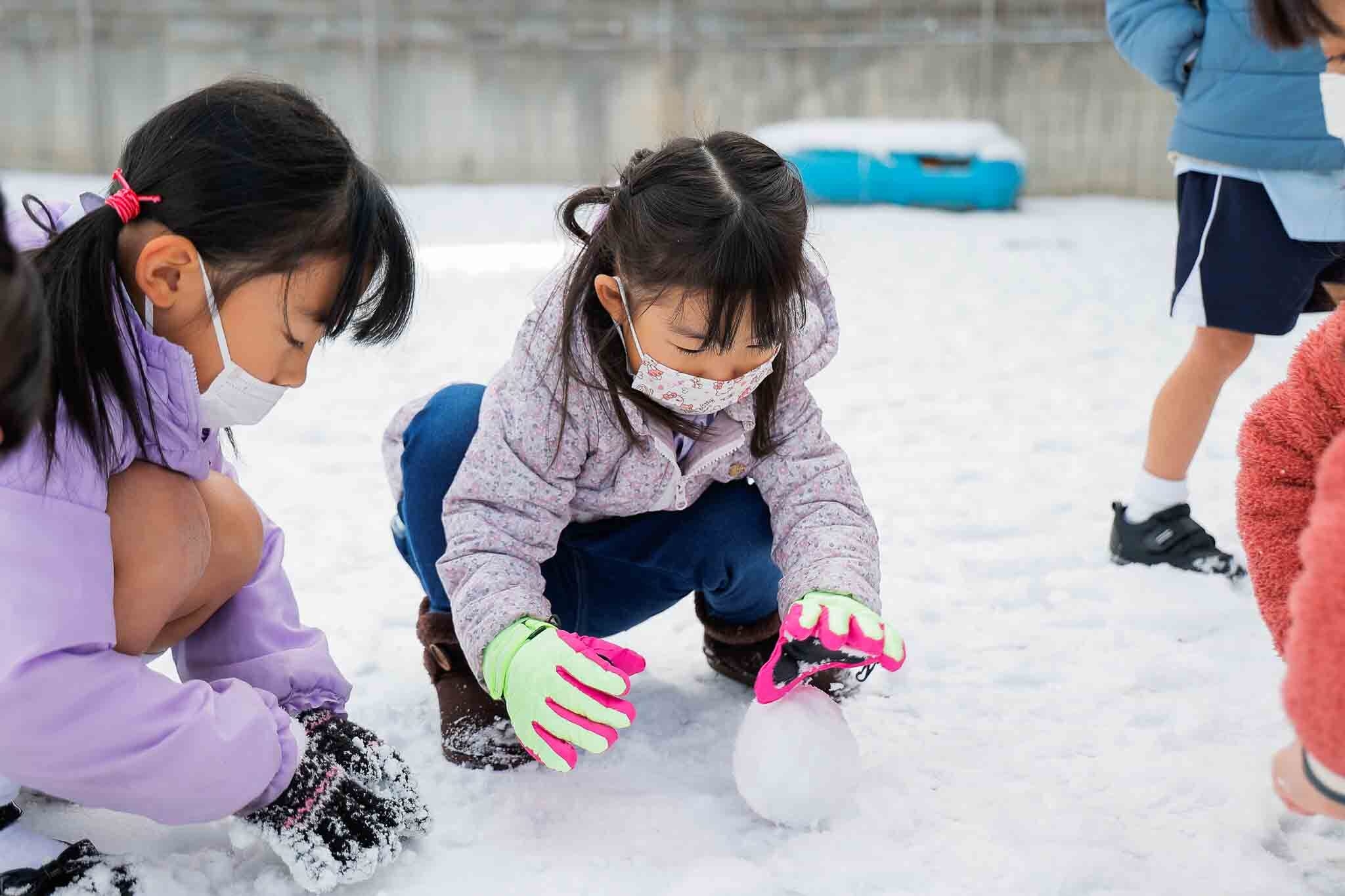 丸めて雪合戦をしたり、雪だるまを作たり!