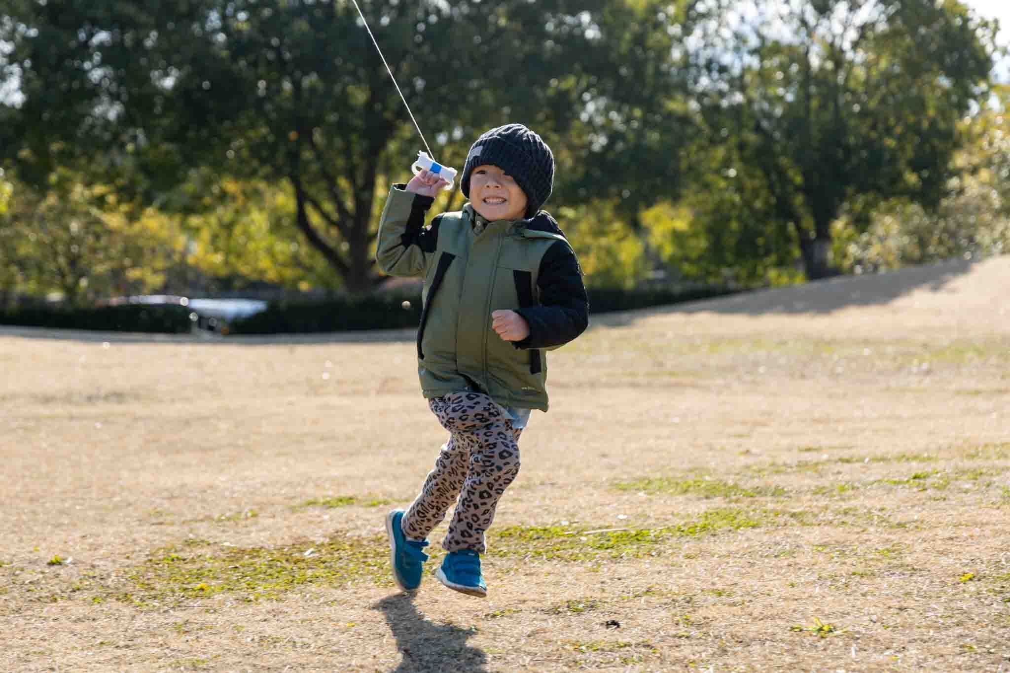 最初は寒い寒いと言っていた子ども達ですが、凧を飛ばすために走り回っていると、