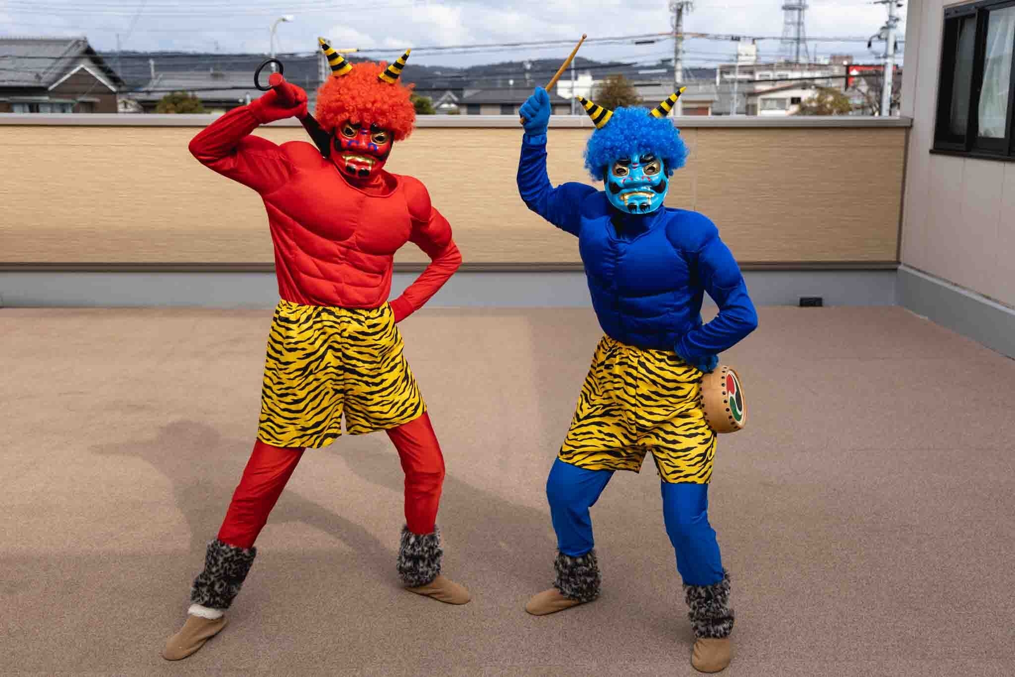 豆をぶつけられた鬼たちは「あいたたたたーーーー!」